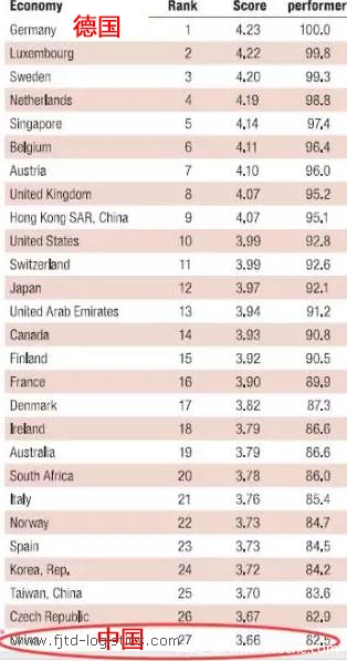 2、德國連續(xù)三屆蟬聯(lián)榜首,中國27位