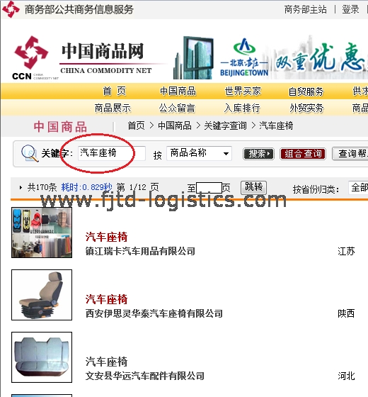 根據(jù)具體的中文品名,如汽車座椅、軸承、坐具:
