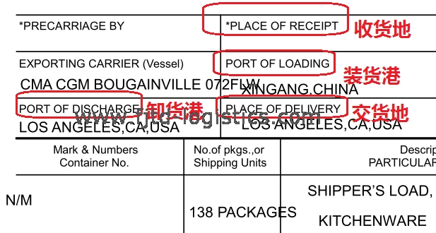 比如:客戶在無水港——石家莊交貨,貨代安排拖車,通過陸運(yùn)拉到天津港,然后在天津港裝船出運(yùn)。這時(shí),石家莊就是收貨地Place Of Receipt了,而裝貨港/起運(yùn)港則是天津港。