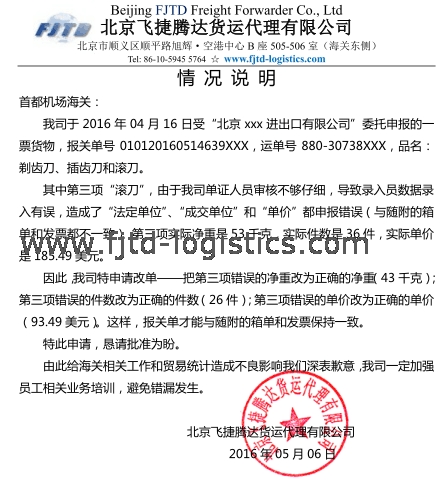 經(jīng)常做報(bào)關(guān)的應(yīng)該知道,在進(jìn)出口申報(bào)中,并不是所有的申報(bào)錯(cuò)誤都可以申請(qǐng)更改的,尤其是海關(guān)放行之后。如果你認(rèn)為申報(bào)有誤,需要改單,就要寫《情況說明》,向海關(guān)書面解釋錯(cuò)誤的原因、類型以及如何更改。海關(guān)會(huì)根據(jù)相關(guān)規(guī)定確定你的更改申請(qǐng)是否合理。如果合理,給予更改;如果不合理,不給更改。