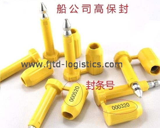 Seal Fee在貨代中俗稱“鉛封費(fèi)”。為什么叫“鉛封”?難道是“鉛”做的?不一定!其實(shí),船公司提供的用于集裝箱上的鉛封基本都是用鋼鐵做的,而且是高強(qiáng)度的鋼鐵。所以封條有時(shí)也稱為“高保封”。