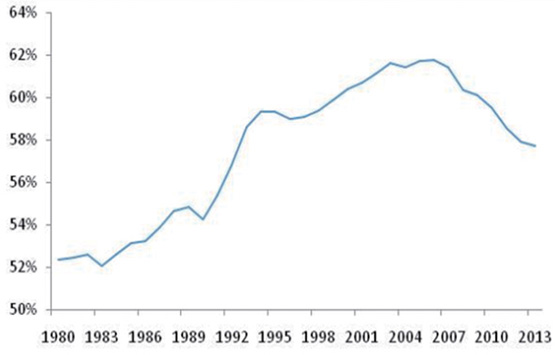 圖6 沿海地區(qū)(含北京)占全國(guó)GDP比重