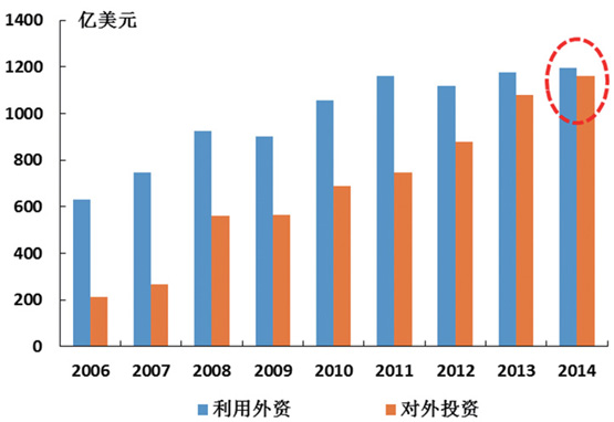圖8 我國(guó)年度利用外資與對(duì)外投資發(fā)展對(duì)比