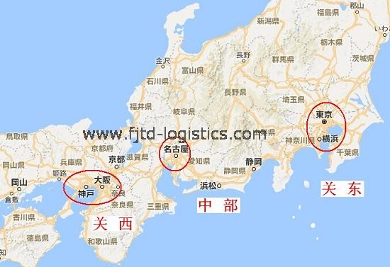 日本根據地理位置分為日本關東航線和日本關西航線。日本關東航線的主要港口有:Nagoya(名古屋);Tokyo(東京);Yokohama(橫濱)。