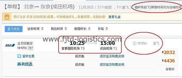 ETD Beijing 10:25(北京時(shí)間);ETA Tokyo 13:00(東京時(shí)間);表面上看,北京-東京飛行時(shí)間=15點(diǎn)-10點(diǎn)25=4小時(shí)35分。因?yàn)闁|京時(shí)間比北京時(shí)間早一個小時(shí),實(shí)際飛行時(shí)間應(yīng)為:(15點(diǎn)-10點(diǎn)25)-1=3小時(shí)35分。
