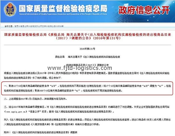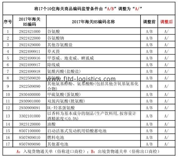 根據(jù)2016年第131號質(zhì)檢總局、海關(guān)總署關(guān)于《出入境檢驗檢疫機構(gòu)實施檢驗檢疫的進出境商品目錄(2017)》調(diào)整的公告,國家質(zhì)檢總局對《出入境檢驗檢疫機構(gòu)實施檢驗檢疫的進出境商品目錄》(以下簡稱《法檢目錄》)作了相關(guān)調(diào)整。