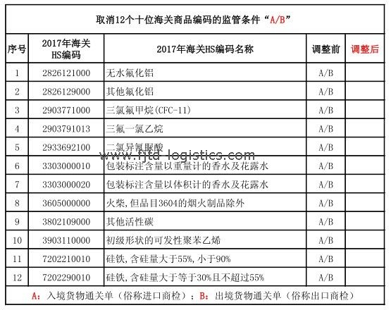 1)取消12個10位海關(guān)商品編碼的監(jiān)管條件“A/B”的: