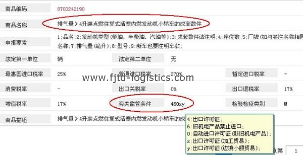 3. HS編碼8703242190排氣量>4升裝點燃往復(fù)式活塞內(nèi)燃發(fā)動機小轎車的成套散件——海關(guān)監(jiān)管條件還有: