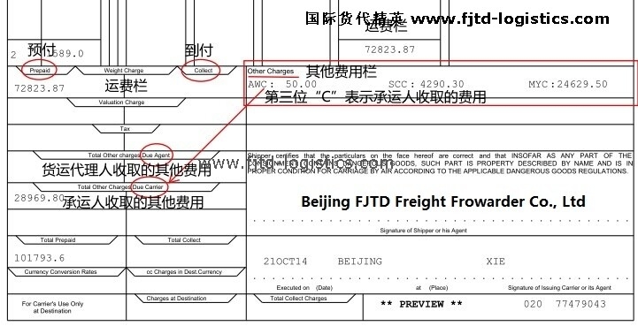 空運(yùn)費(fèi)計(jì)費(fèi)單位和計(jì)費(fèi)重量以運(yùn)單為準(zhǔn)。除了空運(yùn)費(fèi)外的其他費(fèi)用,如AWC制單費(fèi),MYC燃油附加費(fèi),SCC安全附加費(fèi)等,都以運(yùn)單為準(zhǔn)。