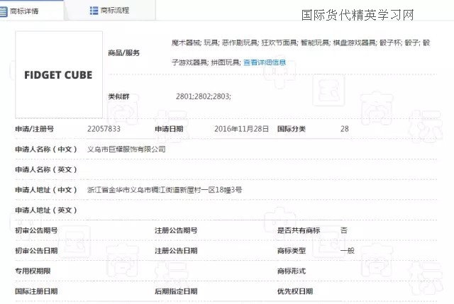 (中國 fidget cube 28類商標)