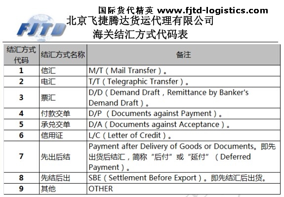 您現(xiàn)在的位置:首頁 >> 物流學(xué)堂 >> 物流百科>>海關(guān)結(jié)匯方式代碼(信用證、電匯等)詳解