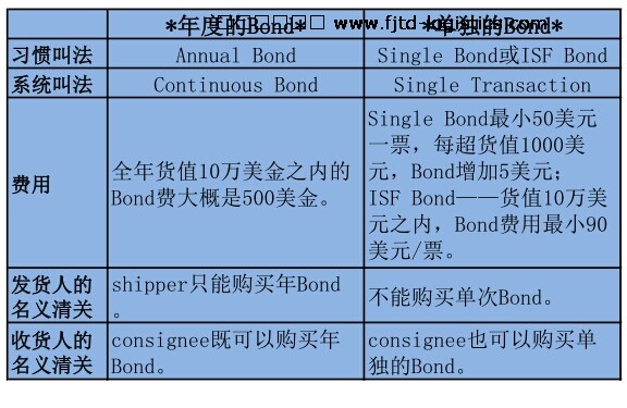 4、Single Bond/Single Transaction——最小50美元一票,每超貨值1000美元,Bond增加5美元。