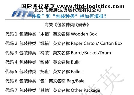 (2)包裝分為內(nèi)包裝(小包裝)和外包裝(大包裝),外包裝(大包裝)一般也稱為運(yùn)輸包裝。報(bào)關(guān)單所要填報(bào)的包裝種類是指外包裝(大包裝),即運(yùn)輸包裝。