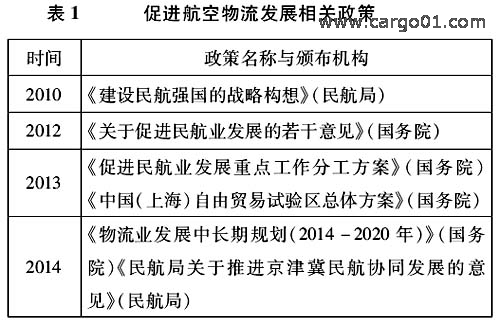 近年來(lái),國(guó)務(wù)院、民航局和各地政府不斷出臺(tái)鼓勵(lì)航空物流發(fā)展的政策,極大促進(jìn)了中國(guó)航空物流業(yè)的發(fā)展(見表1)。