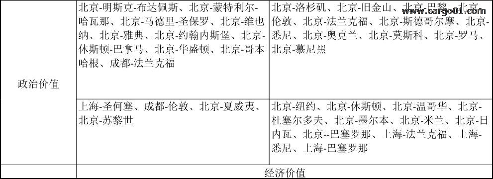 從筆者看來(lái),國(guó)際航線具有經(jīng)濟(jì)價(jià)值和政治價(jià)值雙重屬性,可以用象限圖來(lái)分析。