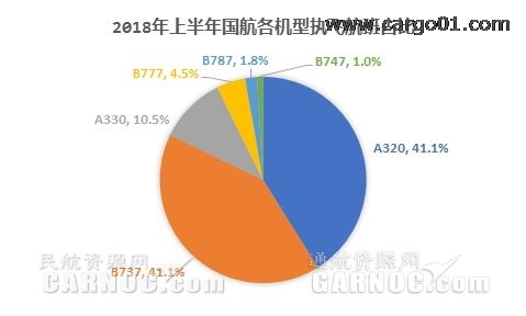 2018年上半年,國航A320和B737執(zhí)飛航班占國航執(zhí)飛航班總量的82.2%,二者執(zhí)飛航班占比相當,均為41.1%,相比去年同期,A320執(zhí)飛航班占比下降0.5%,B737執(zhí)飛航班占比無明顯變化。