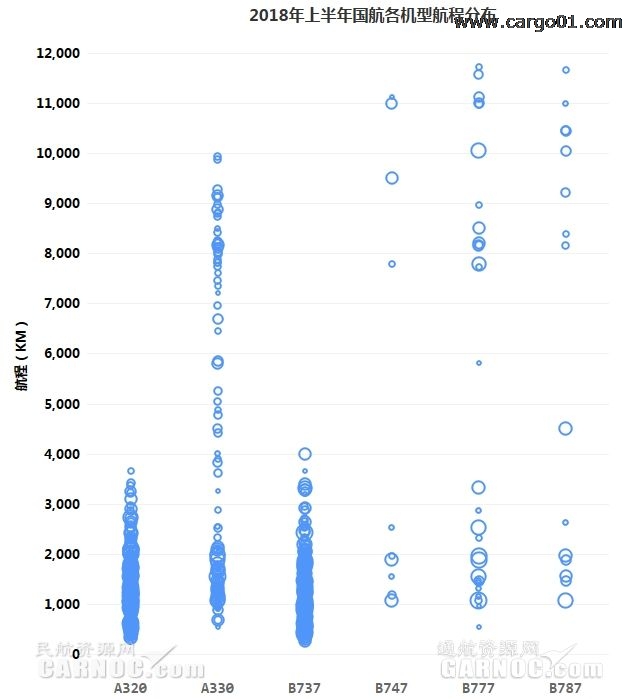 2018年上半年,國航A320和B737機型航程分布相似,平均航程接近,A320平均航程1363KM,B737平均航程1260km;兩種機型的航程均在4000km以下,B737執(zhí)飛航班73.1%航程在1500km以下,A320執(zhí)飛航班63.6%航程在1500km以下。