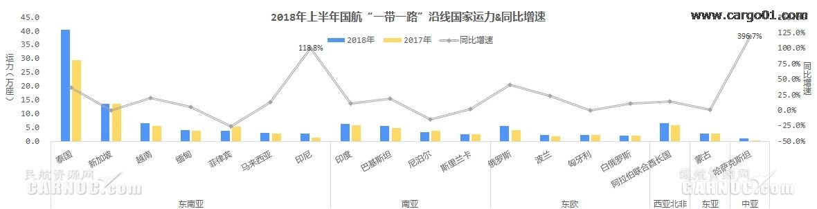 從地域分布來看,國航直飛東南亞國家運力最多,為74.4萬座,占“一帶一路”沿線國家總運力的64.9%,同比增長20.6%;運力排名第二的是南亞,17.8萬座,同比增加6.0%;直飛中亞運力增速最快,相比去年同期增加3倍之多。